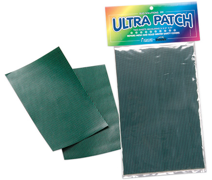 Made of a durable adhesive-backed material, Ultra Patch is designed to repair tears and abraded areas in mesh or solid winter safety covers. Each package contains two sheets measuring 5-3/4” x 9”.