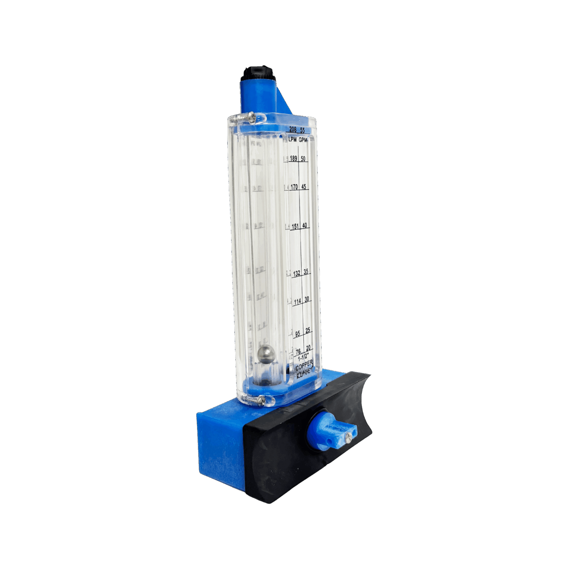 High-strength copper side-mount flowmeter for 1.5″ lines. Monitors 20–55 GPM with durability and accuracy.