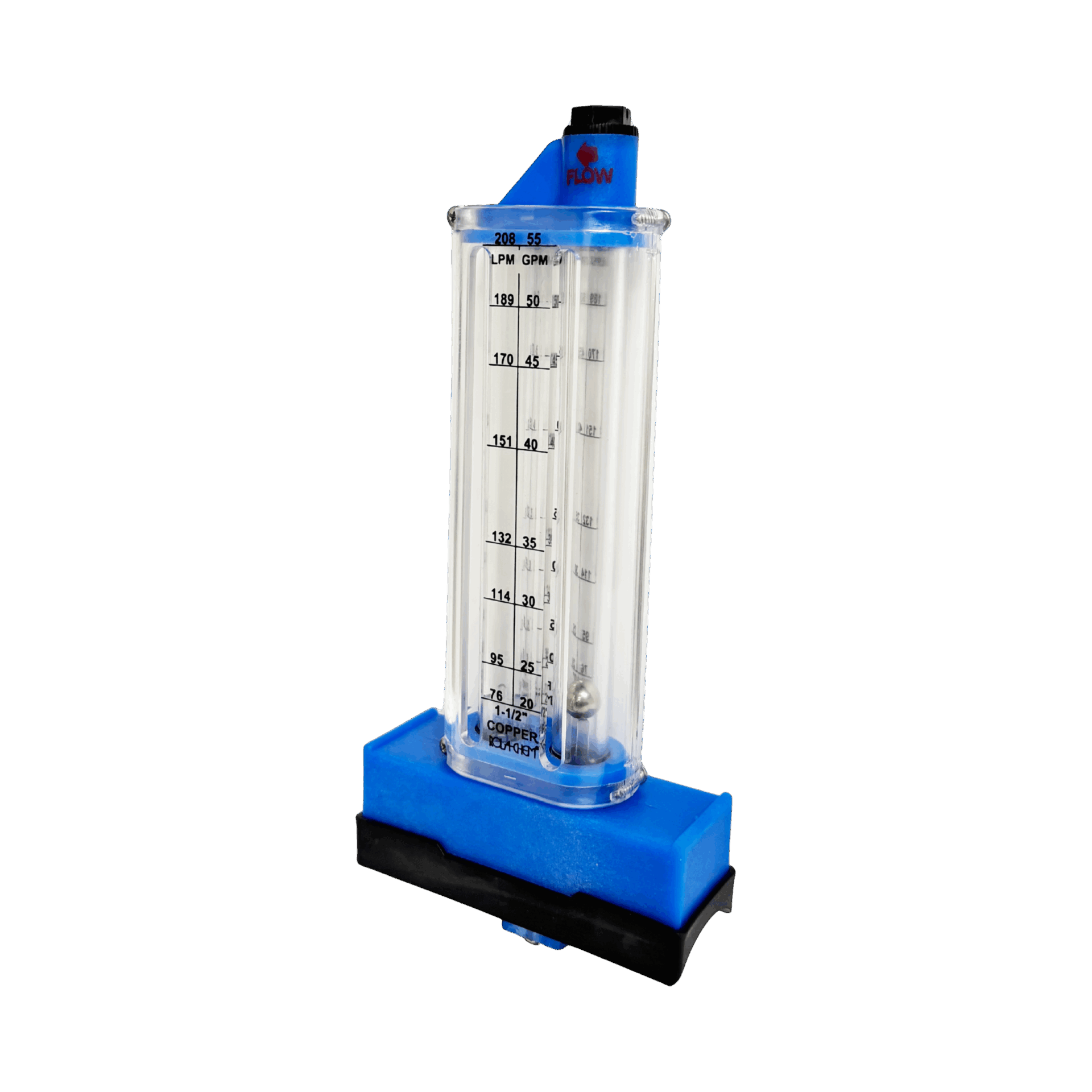 Top-mounted copper flowmeter for 1.5″ systems. Measures 20–55 GPM with dependable accuracy.