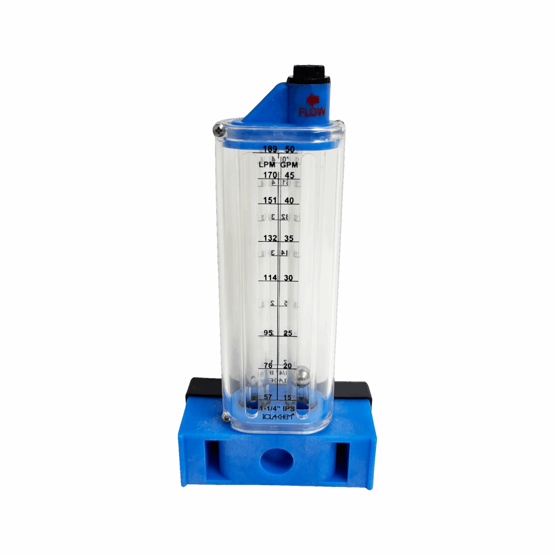 Durable 1.25″ PVC side-mount flowmeter. Provides reliable flow readings from 15–50 GPM, built for long-lasting performance.
