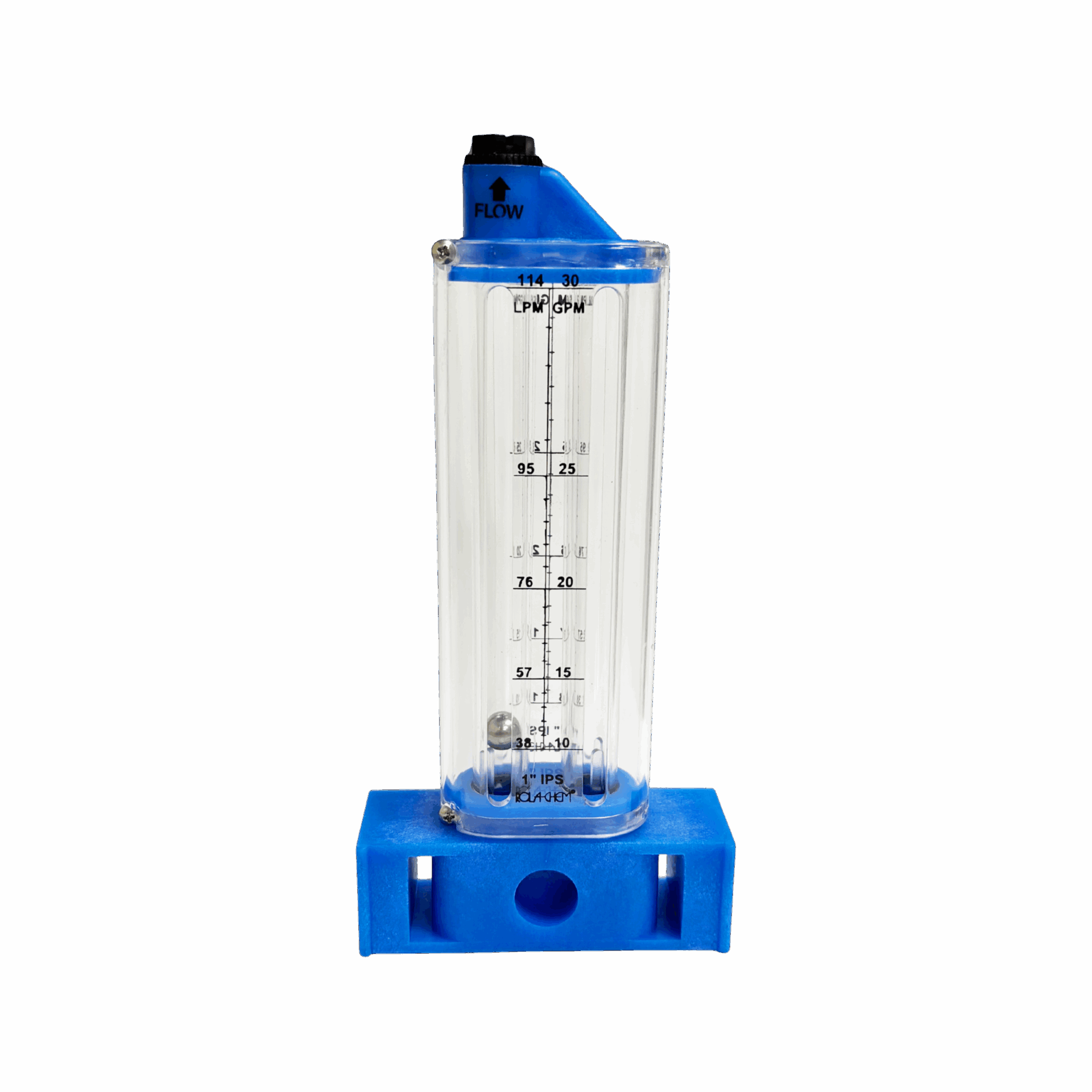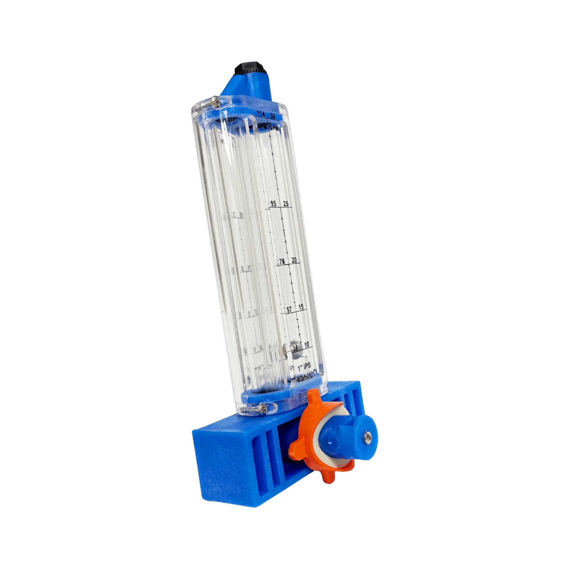 Compact vertical-mount 1″ PVC flowmeter. Measures 10–30 GPM, offering flexibility for tight installations while maintaining clear and accurate flow readings.