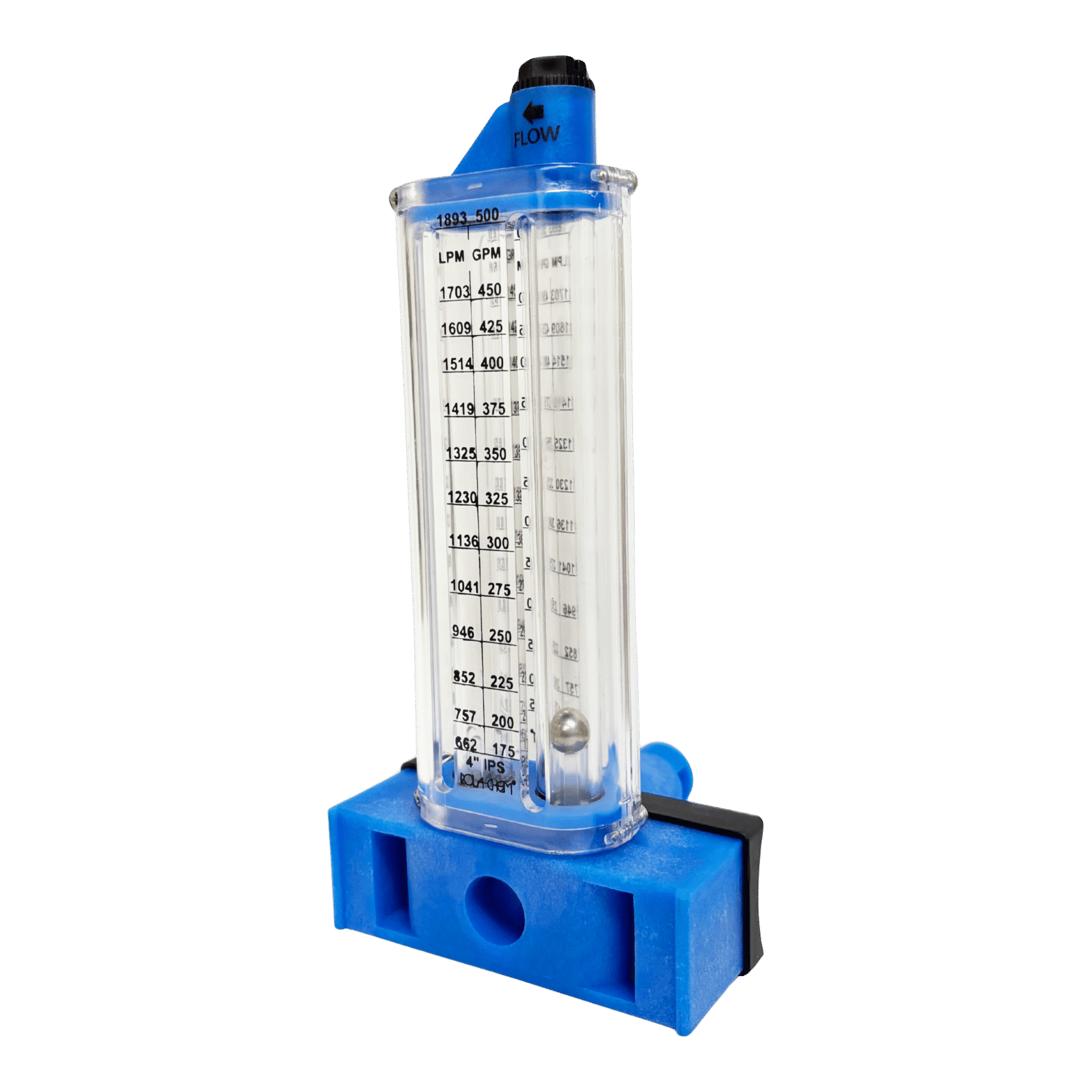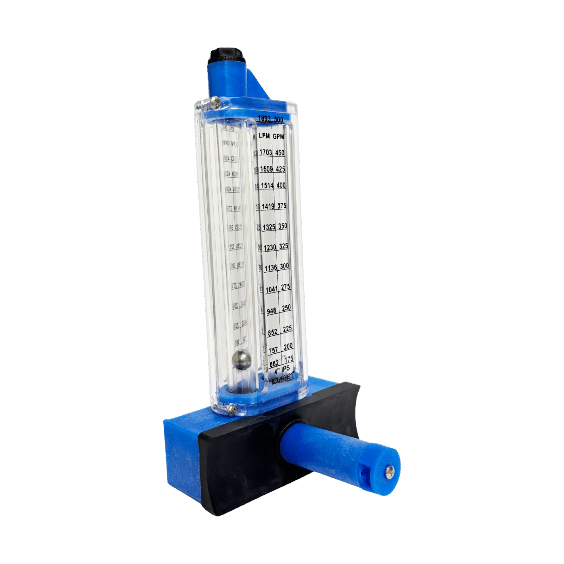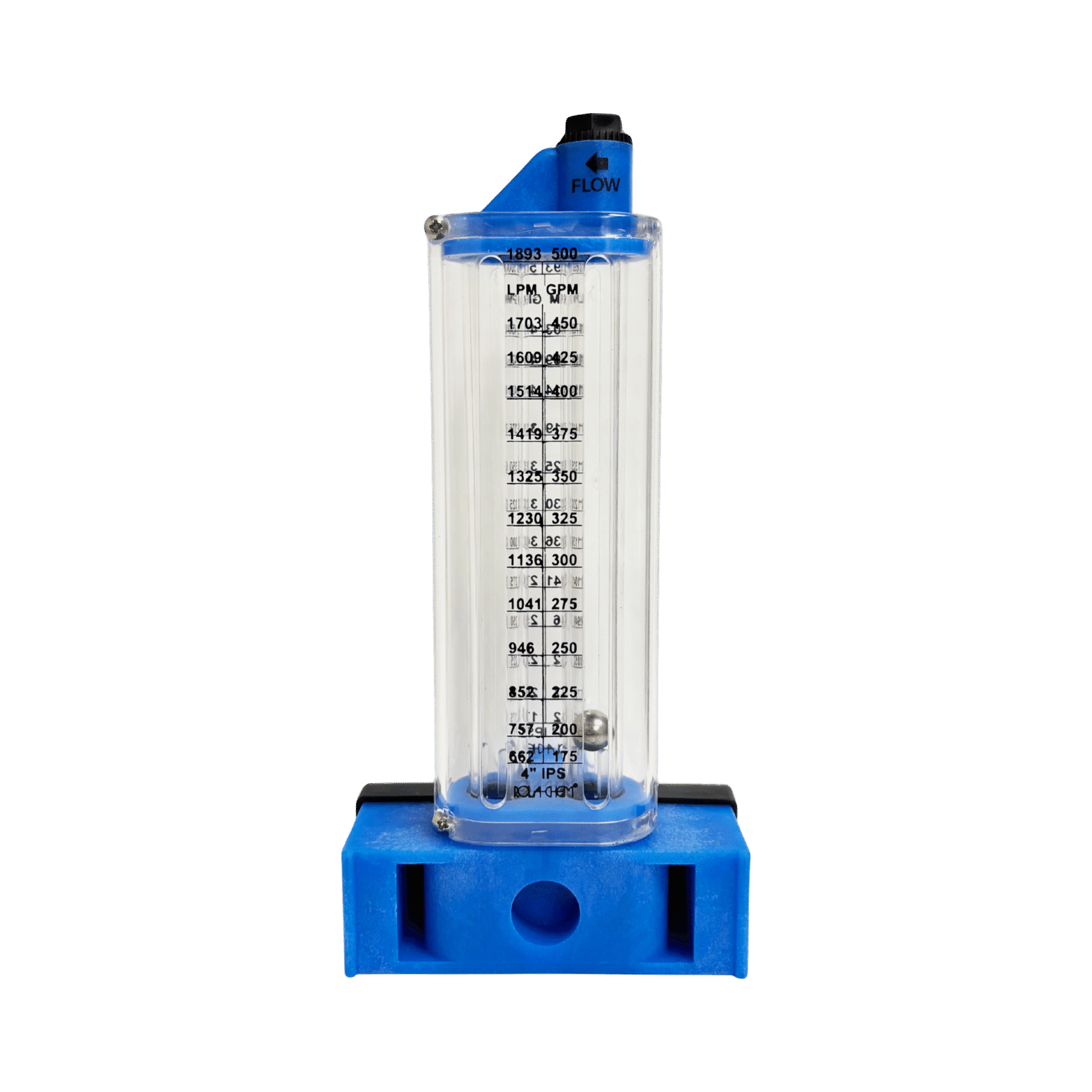 Durable PVC side-mount flowmeter for 4″ systems. Provides clear, accurate readings from 175–500 GPM.