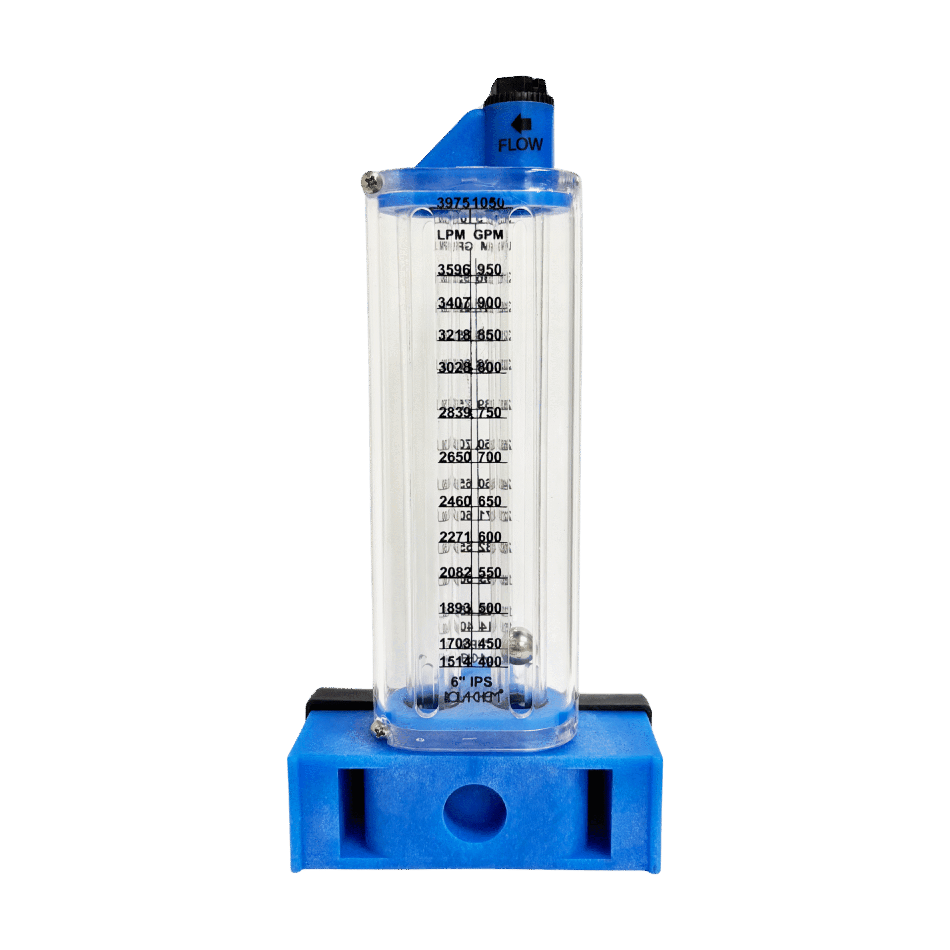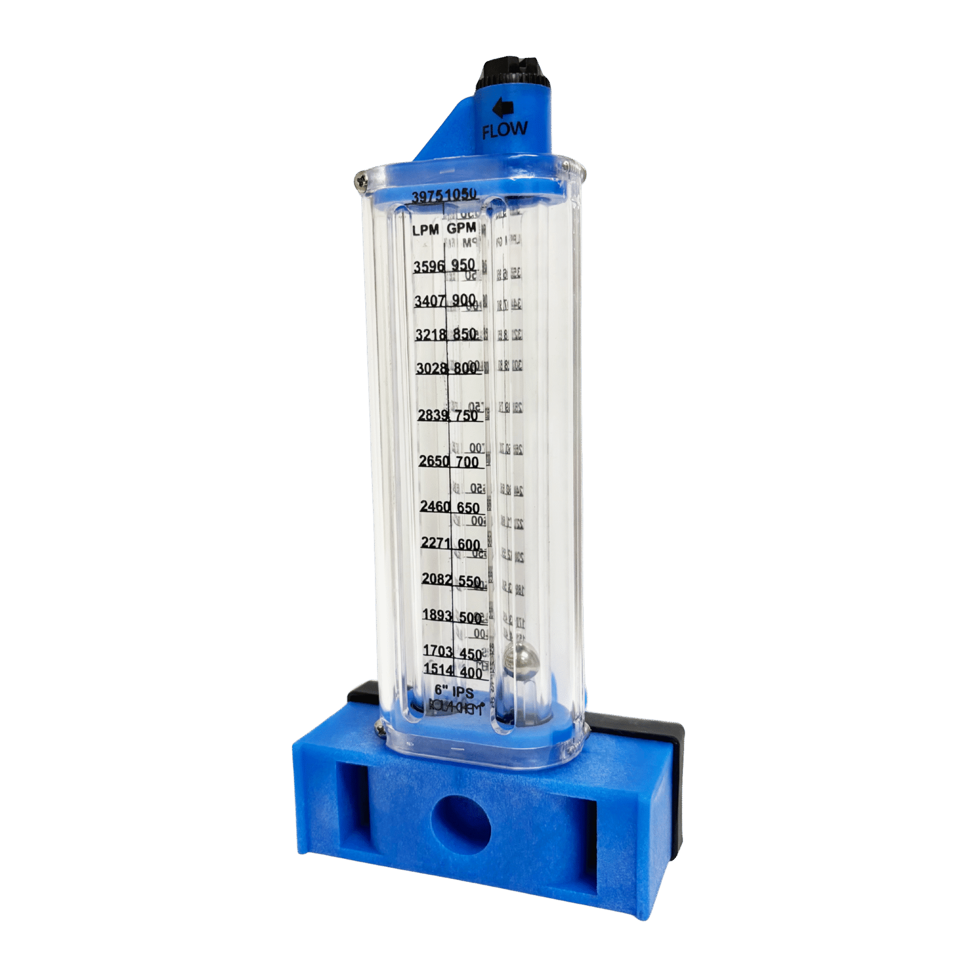 Large-capacity 6″ PVC flowmeter with side-mount design. Provides accurate monitoring of 400–1050 GPM.