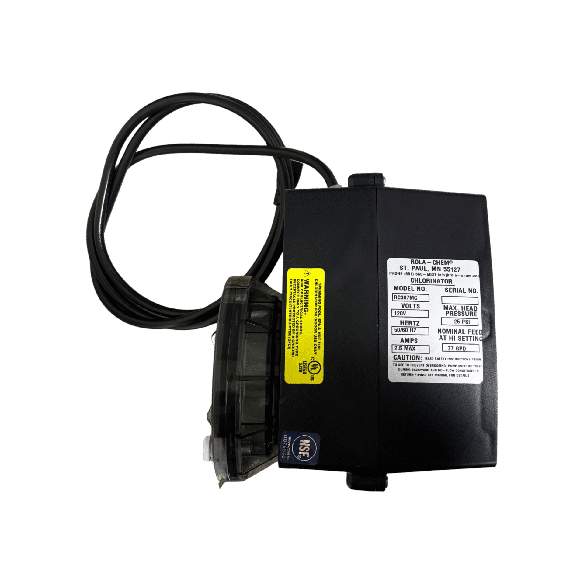 Powerful 77 GPD chemical dosing pump with 120V corded design. Ideal for large pool systems requiring heavy-duty, accurate chemical delivery.