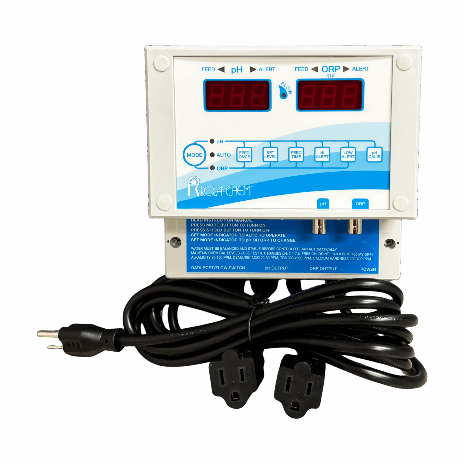RC554XP pH/ORP Controller without probes. Includes flow cell kit and 40′ of 3/8″ black tubing with fittings for flexible integration.