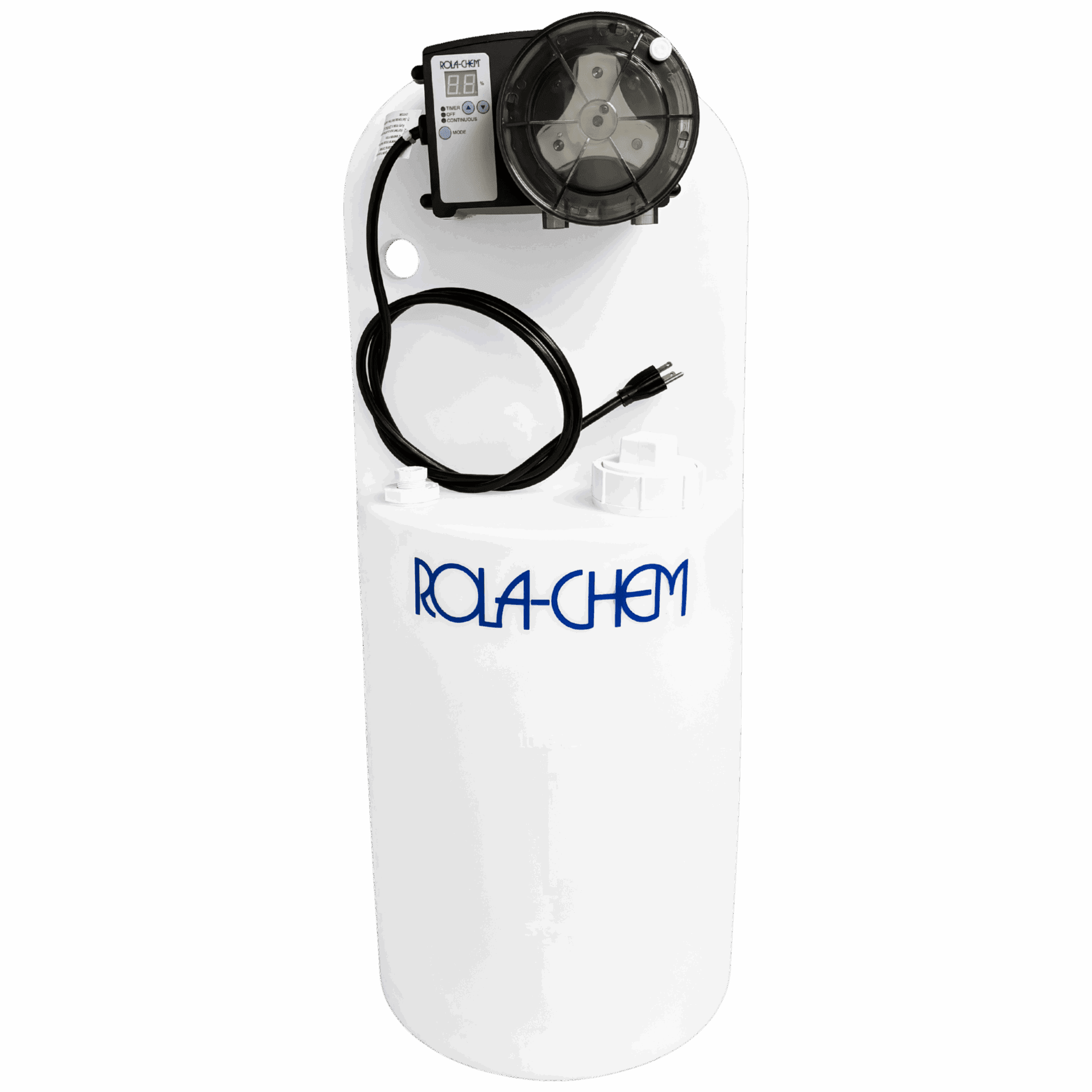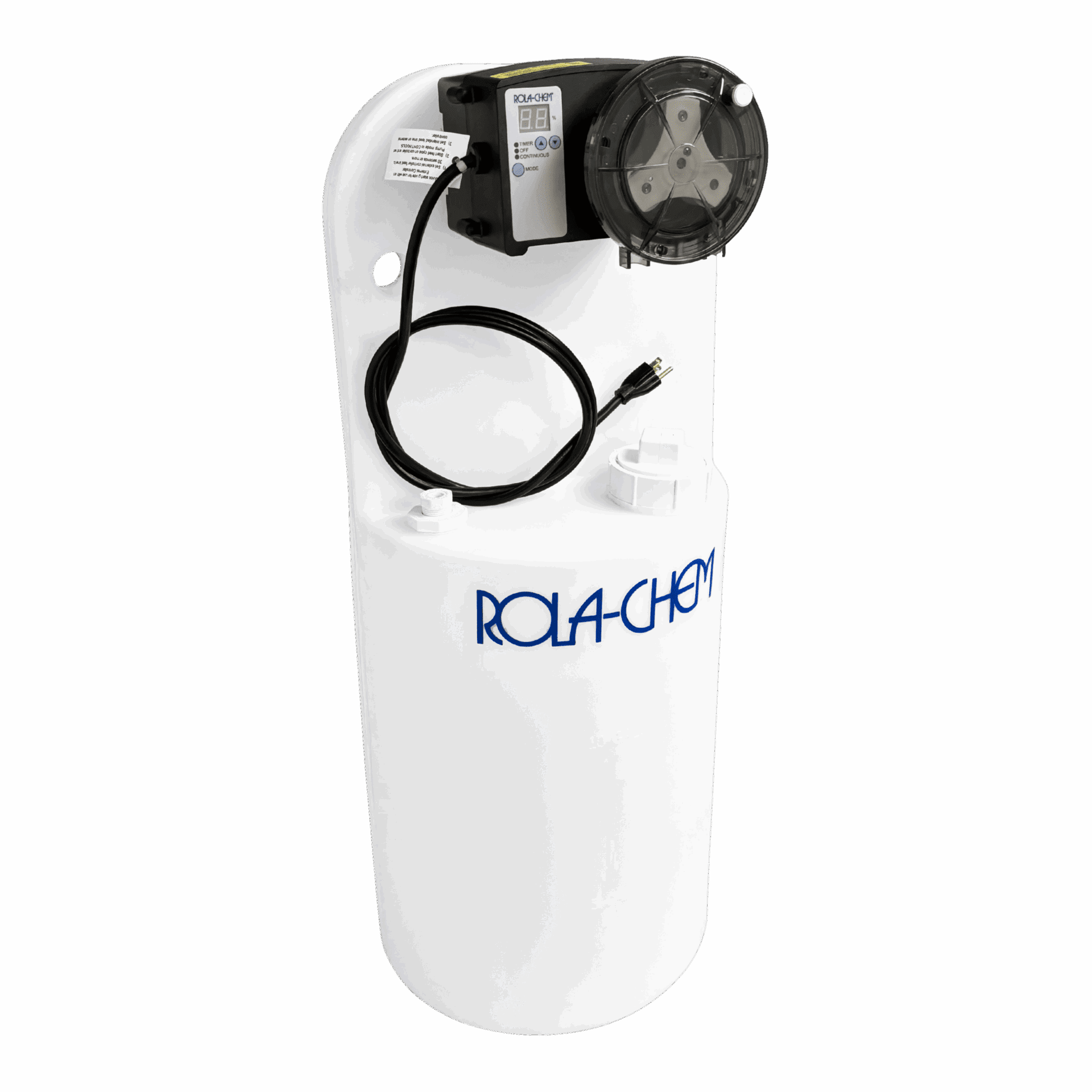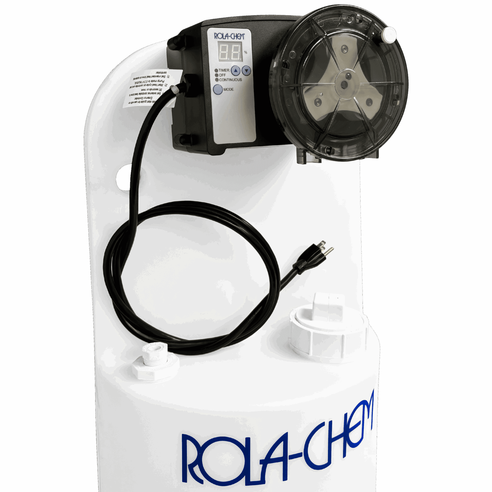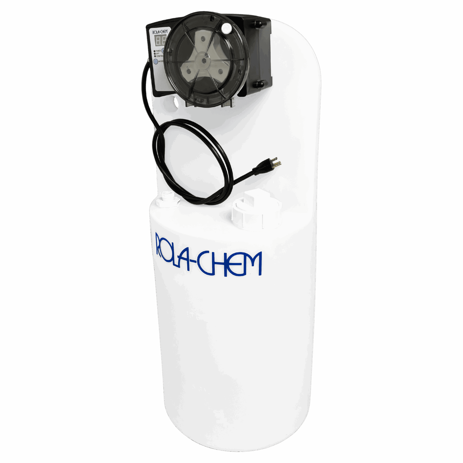 38 GPD RC305 pump mounted on 15-gallon poly tank. High-capacity system ensures safe storage and accurate dosing in one complete package.