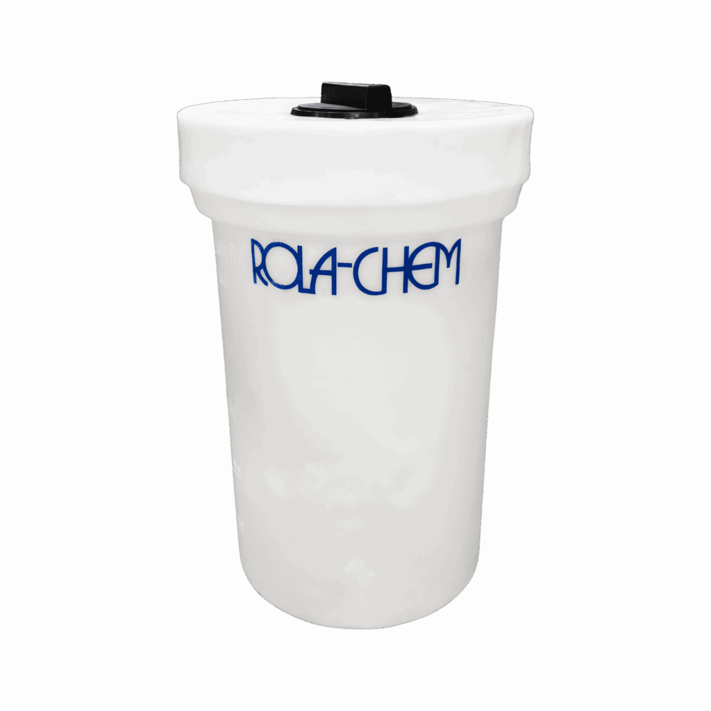 Heavy-duty 30-gallon tank engineered for chemical storage. Secure cover and plug ensure safe handling and reduced risk of spills.